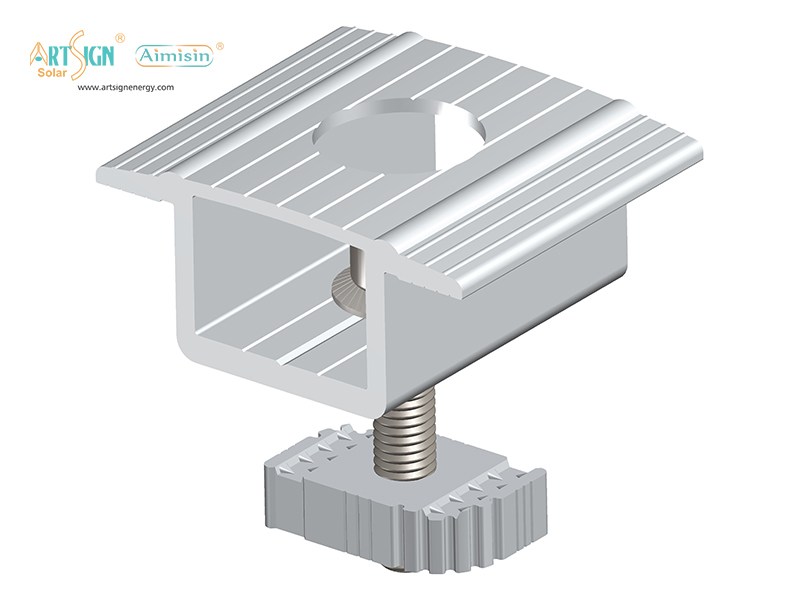 Solar end clamps is mostly used on solar ground mounting system, which is for fixing the mid of solar panels.