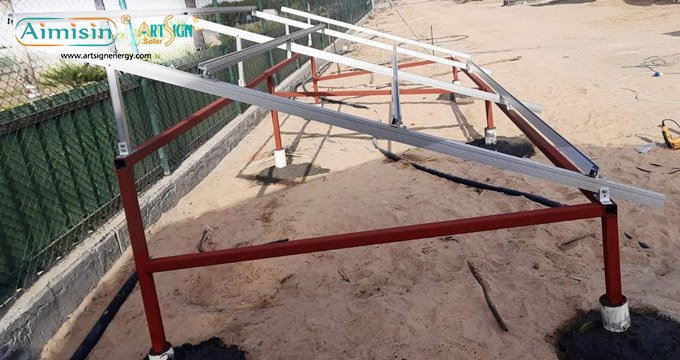 Project site: Kenya System: C-type carbon steel ground mounting system Capacity: 240kW Commission: Power station for the domestic electricity needs of the residents Material: Zinc-Aluminum-Magnesium alloy coated steel and hot dippedqalvanized steel 0235